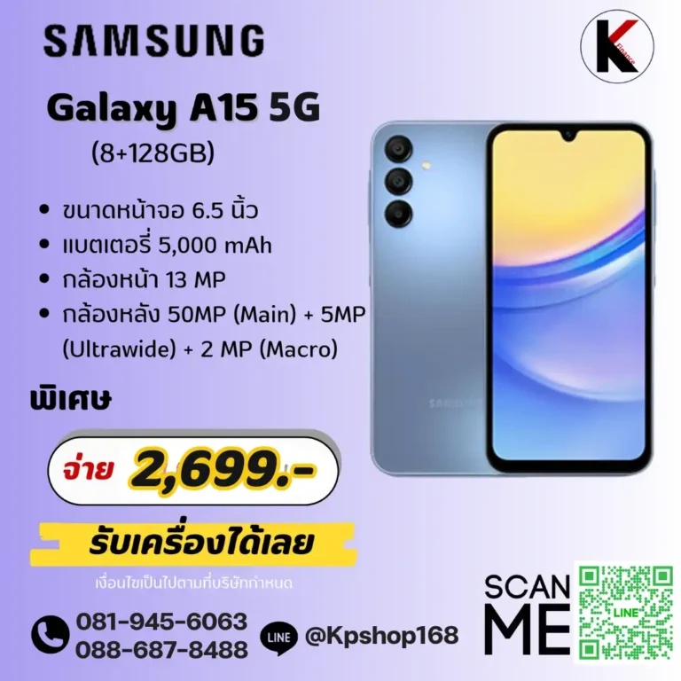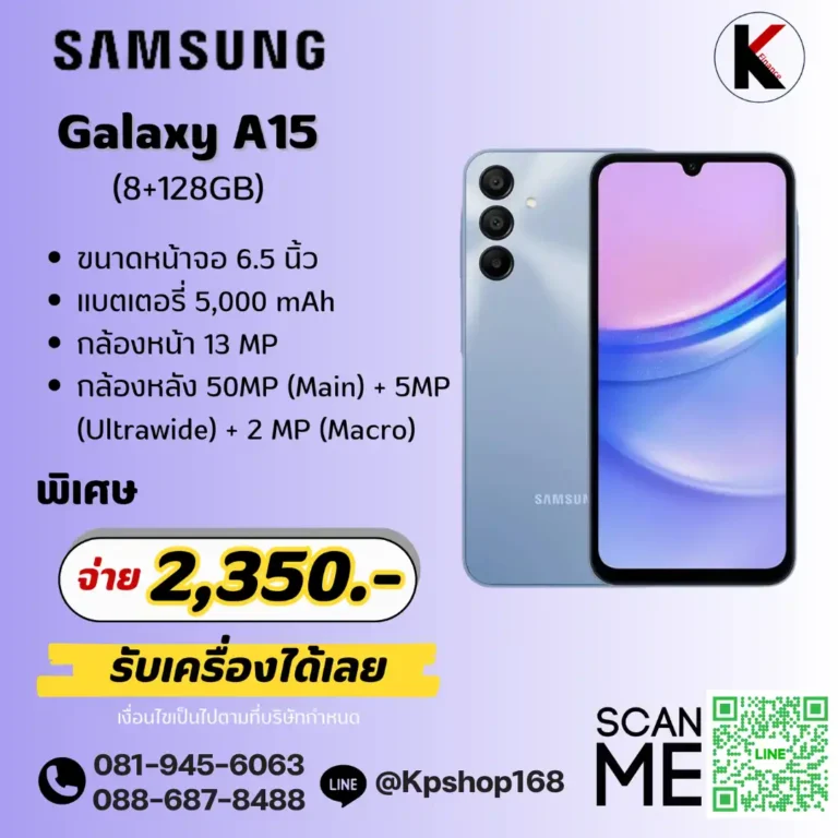 ผ่อน ซัมซุง A15 (8+128GB) ดาวน์ 0 บาท