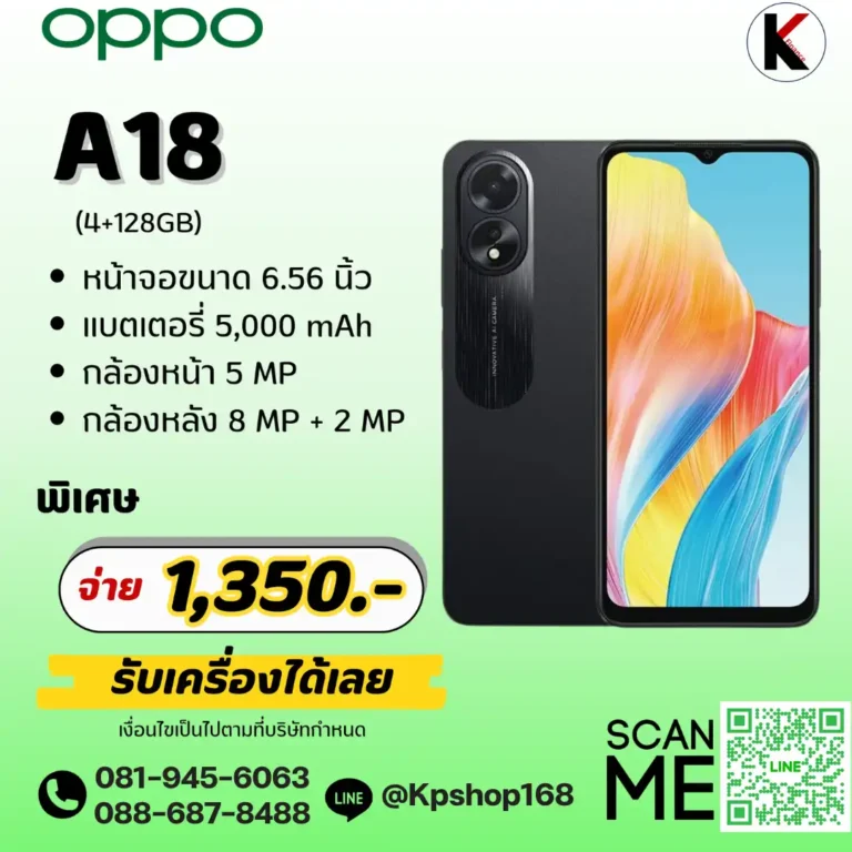 ผ่อนออปโป้ OPPO A18 (4+128GB) ดาวน์ 0 บ…